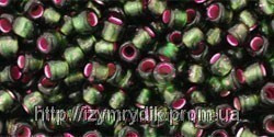 Round 8/0: Silver-Lined Frosted Olivine - Pink Lined
